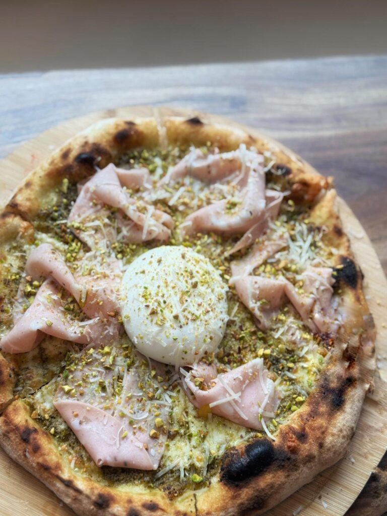 (sos pomidorowy, mozzarella fior di latte, pstrąg wędzony, czerwona cebula, papryczki gocce de peperoni) - Prosciutto