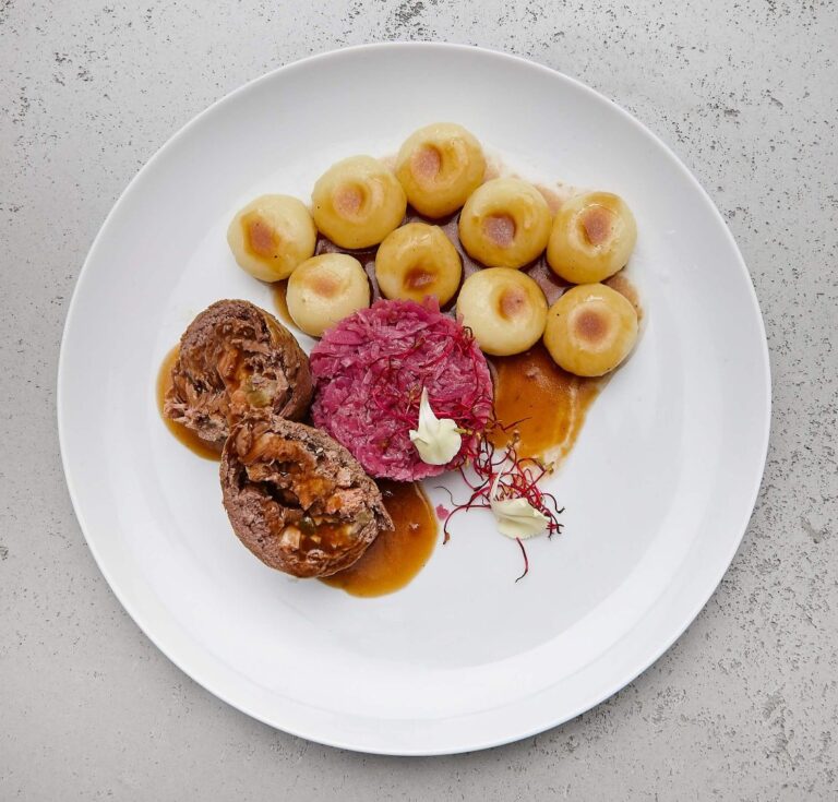 - Rolada wołowa, kluski śląskie, modra kapusta